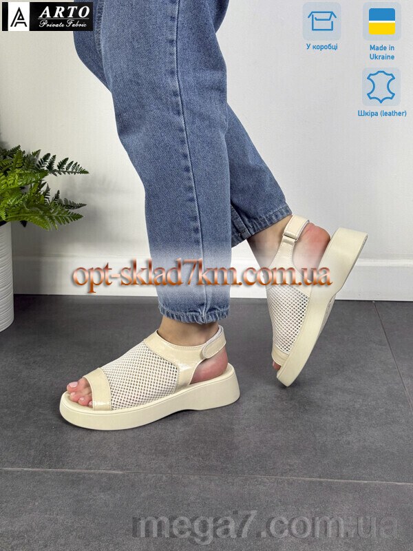 Цвет: бежевый; Материал изделия: натуральная кожа; Размерная сетка: 36-41; Материал подошвы: пена; Страна: Украина; Высота платформы: 4; Размер (на фото): 37; Сезон: лето; Пол: женщины; Материал стельки: искусственная кожа; Коробка: да;