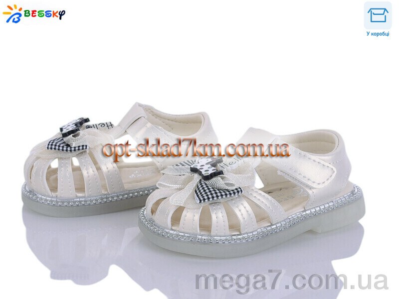 Цвет: бежевый; Материал изделия: искусственная кожа; Размерная сетка: 17-21; Материал подкладки: искусственная кожа; Материал подошвы: пвх; Страна: Китай; Размер (на фото): 17; Сезон: лето; Пол: дети; Тип: девочка; Материал стельки: искусственная кожа; Коробка: да;