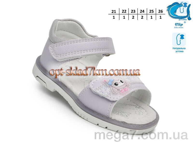 Цвет: фиолетовый; Материал изделия: искусственная кожа; Размерная сетка: 21-26; Материал подкладки: искусственная кожа; Материал подошвы: пвх; Страна: Китай; Размер (на фото): 21; Сезон: лето; Пол: дети; Тип: девочка; Материал стельки: натуральная кожа;