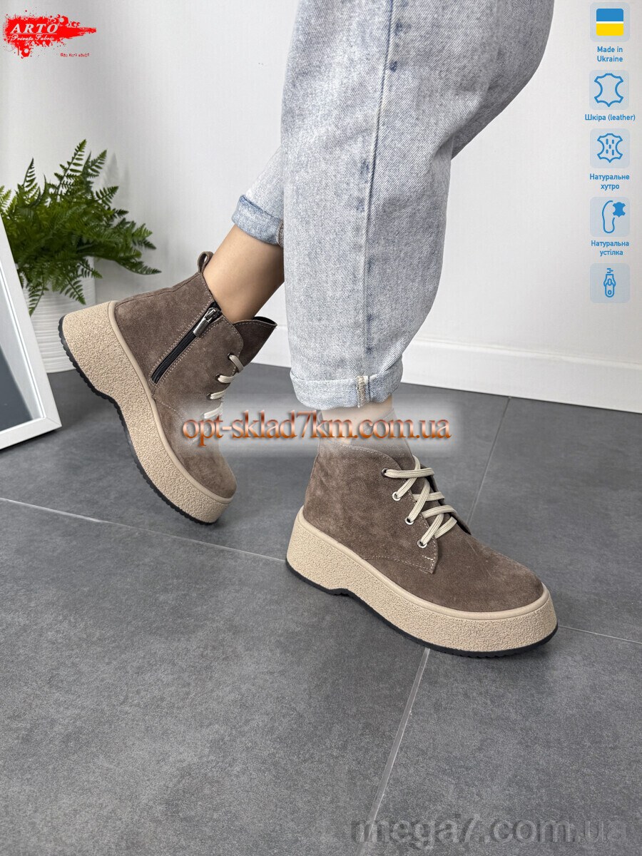 Цвет: коричневый; Материал изделия: натуральная замша; Размерная сетка: 36-40; Материал подкладки: натуральный мех; Материал подошвы: пвх; Страна: Украина; Высота платформы: 5.5; Размер (на фото): 37; Сезон: зима; Пол: женщины; Материал стельки: натуральный мех; Змейка: да;