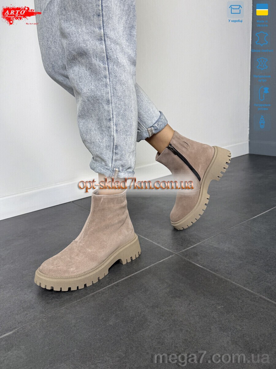 Цвет: бежевый; Материал изделия: натуральная замша; Размерная сетка: 36-40; Материал подкладки: натуральный мех; Материал подошвы: пвх; Страна: Украина; Высота каблука, см: 4.5; Высота платформы: 3; Размер (на фото): 37; Сезон: зима; Пол: женщины; Материал стельки: натуральный мех; Змейка: да; Коробка: да; Фото поставщика: да;