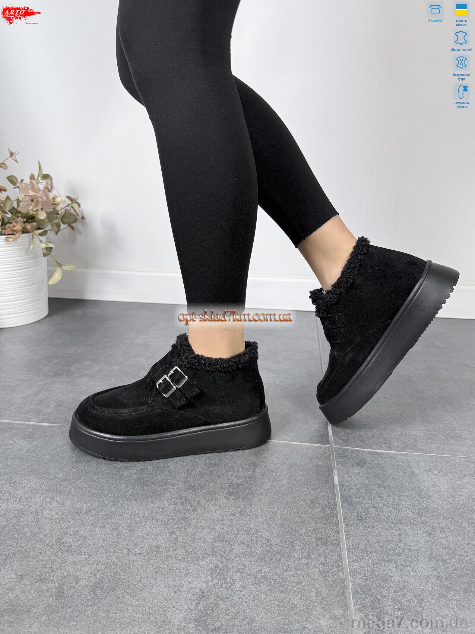 Цвет: черный; Материал изделия: натуральная замша; Размерная сетка: 37-41; Материал подкладки: натуральный мех; Материал подошвы: пена; Страна: Украина; Высота платформы: 4; Размер (на фото): 37; Сезон: зима; Пол: женщины; Материал стельки: натуральный мех; Коробка: да; Фото поставщика: да;