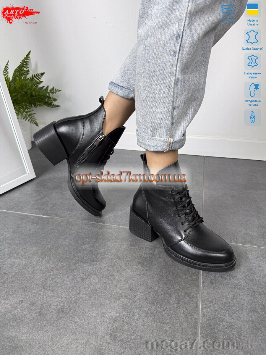 Цвет: черный; Материал изделия: натуральная кожа; Размерная сетка: 36-40; Материал подкладки: натуральный мех; Материал подошвы: пвх; Страна: Украина; Высота каблука, см: 5.5; Размер (на фото): 37; Сезон: зима; Пол: женщины; Материал стельки: натуральный мех; Змейка: да; Коробка: да; Фото поставщика: да;