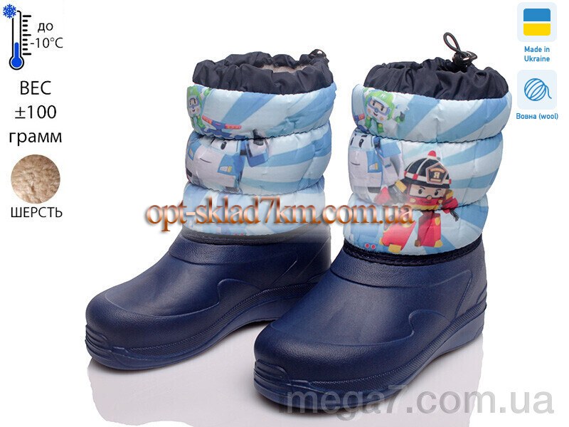 Цвет: синий; Материал изделия: текстиль; Размерная сетка: 28-34; Материал подкладки: натуральная шерсть; Материал подошвы: EVA; Страна: Украина; Сезон: зима; Пол: дети; Тип: мальчик;