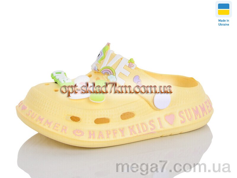 Цвет: желтый; Материал изделия: пена; Размерная сетка: 25-30; Материал подошвы: пена; Страна: Украина; Высота платформы: 2.5; Размер (на фото): 25; Сезон: лето; Пол: дети; Тип: девочка;