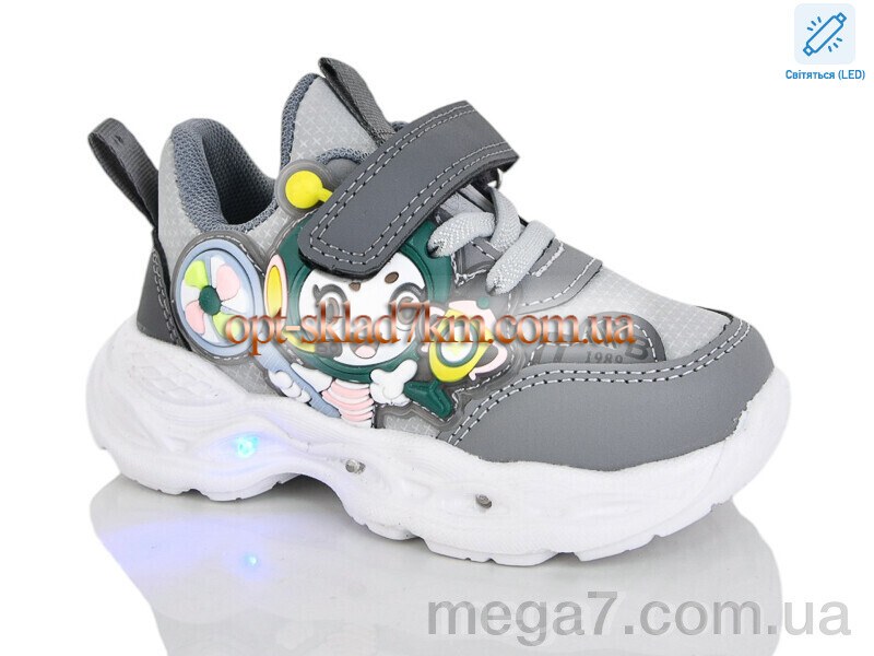 Цвет: серый; Материал изделия: искусственная кожа; Размерная сетка: 21-26; Материал подкладки: текстиль; Материал подошвы: пена; Страна: Китай; Высота платформы: 3; Размер (на фото): 26; Сезон: демисезон; Пол: дети; Тип: унисекс; Материал стельки: текстиль; LED: да;