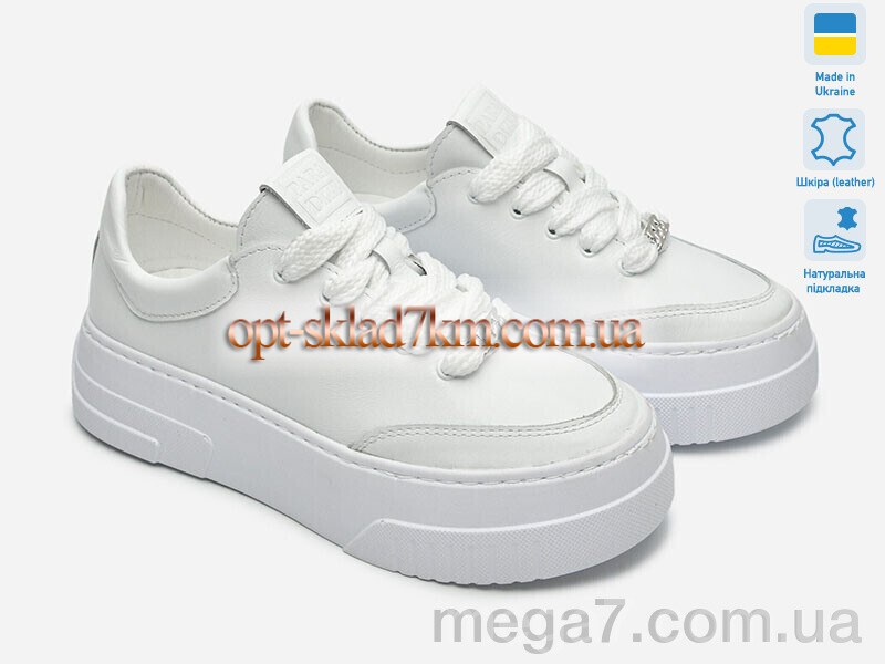 Цвет: белый; Материал изделия: натуральная кожа; Размерная сетка: 36-41; Материал подкладки: натуральная кожа; Материал подошвы: полиуретан; Страна: Украина; Сезон: демисезон; Пол: женщины; Фото поставщика: да;