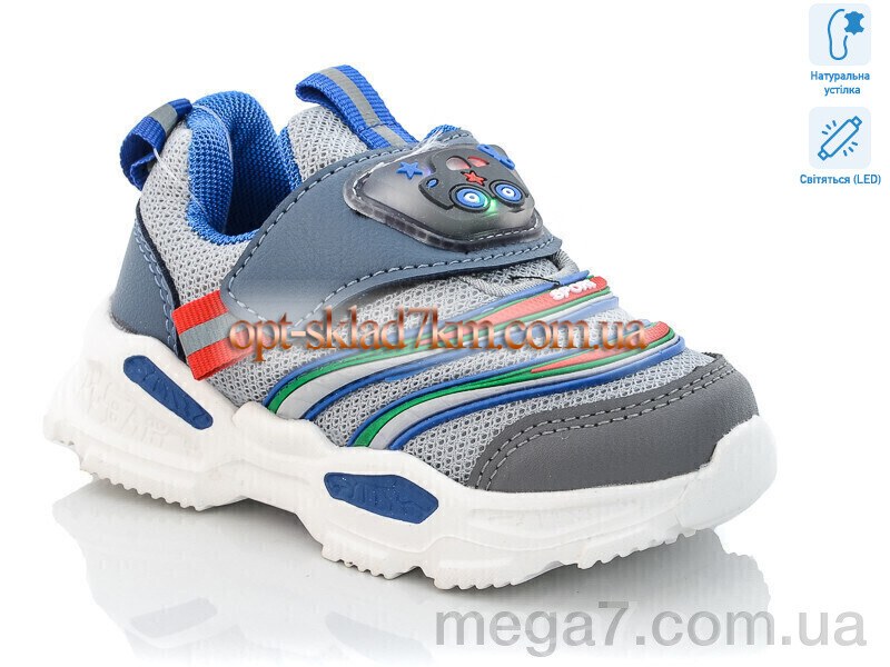 Цвет: серый; Материал изделия: искусственная кожа-текстиль; Размерная сетка: 21-26; Материал подкладки: текстиль; Материал подошвы: пена; Страна: Китай; Высота платформы: 3; Размер (на фото): 23; Пол: дети; Тип: мальчик; Материал стельки: натуральная кожа; LED: да;
