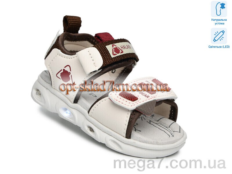 Цвет: бежевый; Материал изделия: искусственная кожа-текстиль; Размерная сетка: 21-26; Материал подкладки: текстиль; Материал подошвы: пена; Страна: Китай; Высота платформы: 2; Размер (на фото): 21; Сезон: лето; Пол: дети; Тип: мальчик; Материал стельки: натуральная кожа; LED: да;