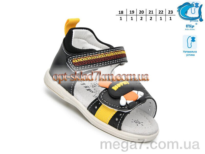 Цвет: черный; Материал изделия: искусственная кожа; Размерная сетка: 18-23; Материал подкладки: текстиль; Материал подошвы: пвх; Страна: Китай; Размер (на фото): 18; Сезон: лето; Пол: дети; Тип: мальчик; Материал стельки: натуральная кожа;