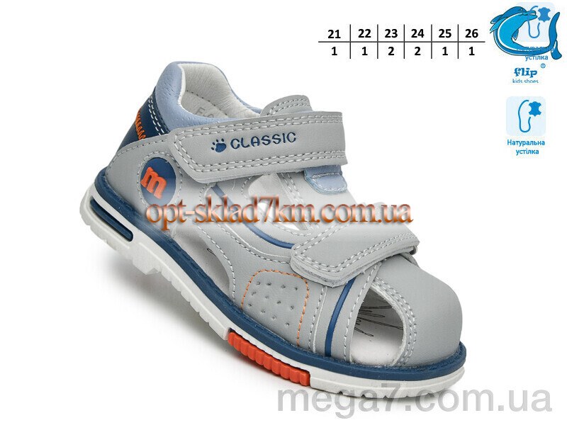 Цвет: серый; Материал изделия: искусственная кожа; Размерная сетка: 21-26; Материал подкладки: искусственная кожа; Материал подошвы: пвх; Страна: Китай; Размер (на фото): 21; Сезон: лето; Пол: дети; Тип: мальчик; Материал стельки: натуральная кожа;