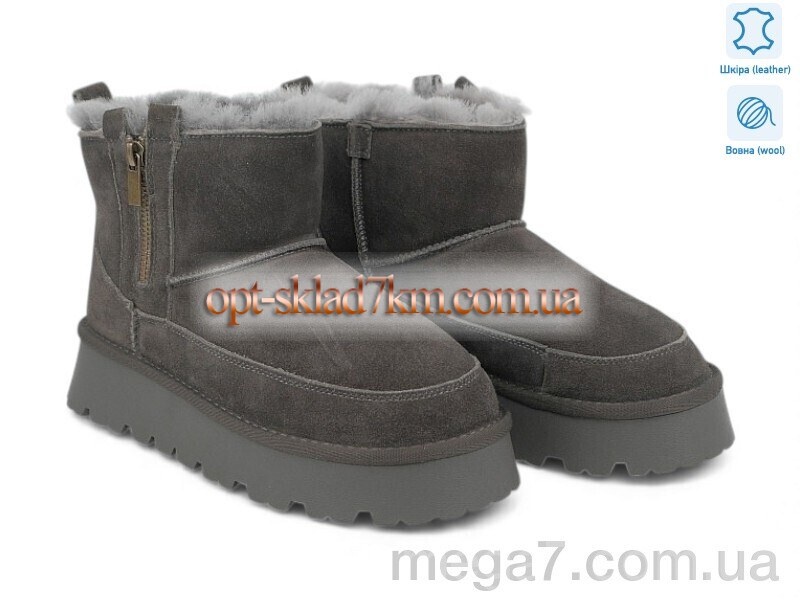 Цвет: серый; Материал изделия: натуральная кожа; Размерная сетка: 36-41; Материал подкладки: натуральная шерсть; Материал подошвы: резина; Страна: Китай; Размер (на фото): 37; Сезон: зима; Пол: женщины; Фото поставщика: да;